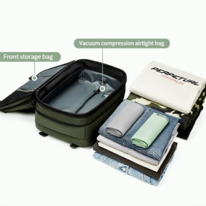 • Built-in Air Compression System: Effortlessly compress soft items like clothing and bedding, reducing their volume by up to 70%. Perfect for saving space during trips or daily commutes.